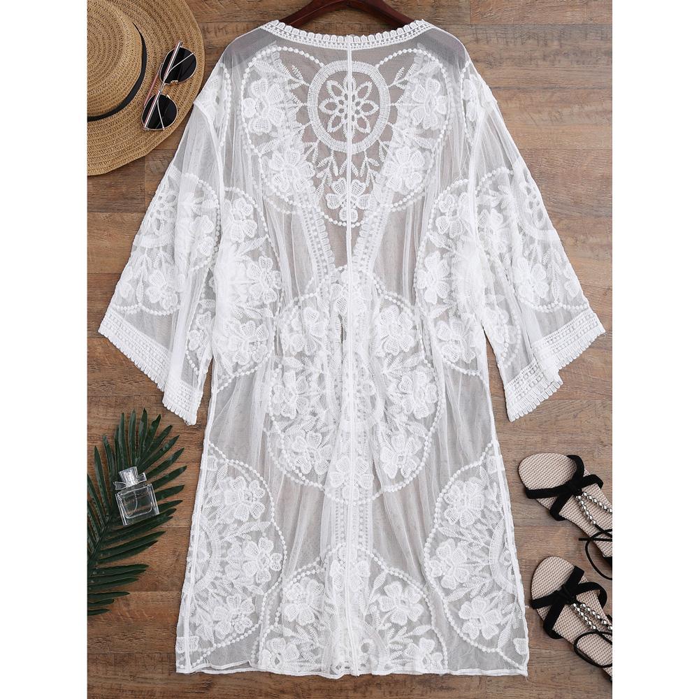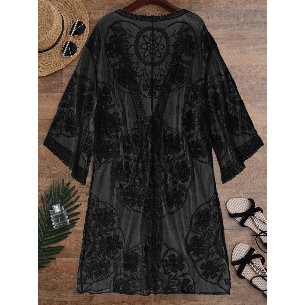 Cover up in style! Hit the beach with this embroidery cover up. Flirty see through is good to match with sexy triangle bikinis and will surely complement your swimwear. The casual loose fit is right for a relaxed holiday enjoyment!